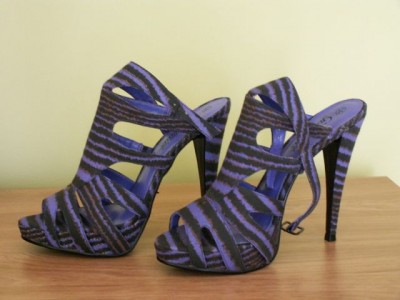 mam do sprzedania eleganckie, wysokie szpilki marki New Look, zakupione w Anglii, w rozmiarze 38. Są koloru fioletowo- czarnego, prążkowane, co widać na zdjęciu. Buty były używane tylko raz, a więc ich stan jest niemal idealny.