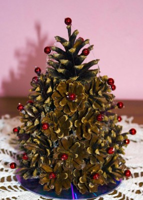 Mam do zaoferowania ozdoby świąteczne ręcznie robione choinki, wysokość 20-30cm idealne na biurko lub stół. Stroik Świąteczny w kształcie choinki wykonany ręcznie z Darów Natury. Solidna konstrukcja,obklejona została szyszkami istnieje możliwość zawieszenia światełek co daje bardzo fajny efekt wymiary największa ma wysokość 30cm szerokość u podstawy 19cm. Proszę o kontakt na pm