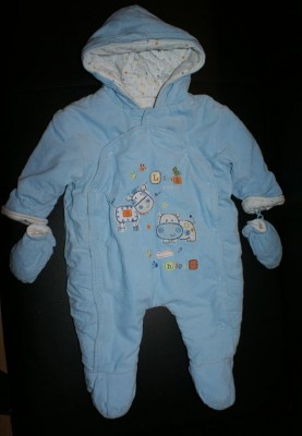 niebieski kombinezon st. bernard 9-12m z rekawiczkami.